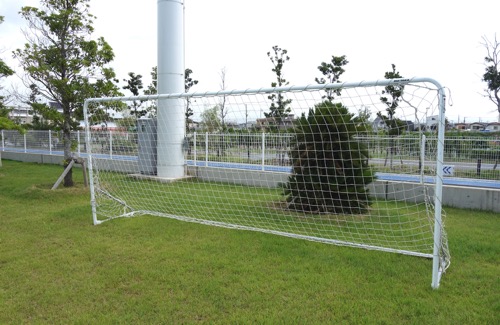 アルミ製で軽く、河川敷に適した転倒式ゴール