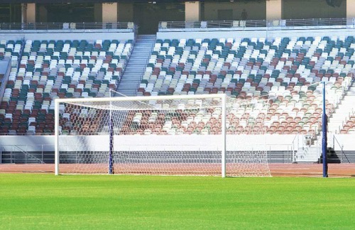 サッカーやフットボールの試合で使用する標準的なゴール。安全性と耐久性を考慮した設計が求められます。