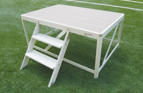 学校の朝礼や運動会、式典などで使用される、高さを設けた台。全体を見渡す指揮や挨拶に適しています。