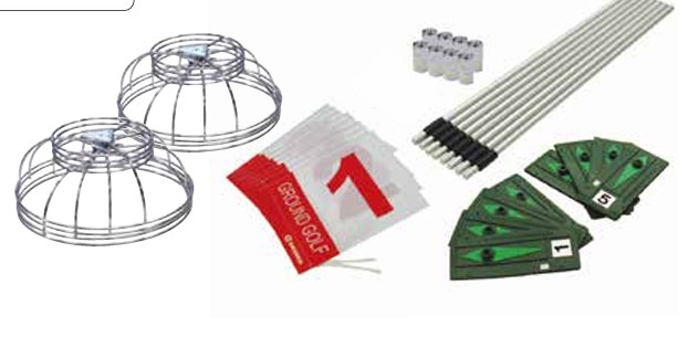 グラウンドゴルフコースのホールポスト、ゲート、旗など、コース設定やゲームの進行に必要な設備です。