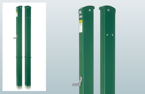ウインチ内蔵のステンレス製角型テニスポスト