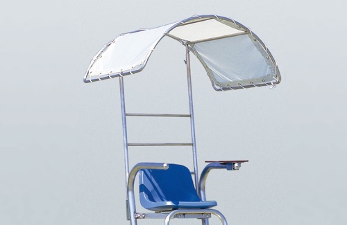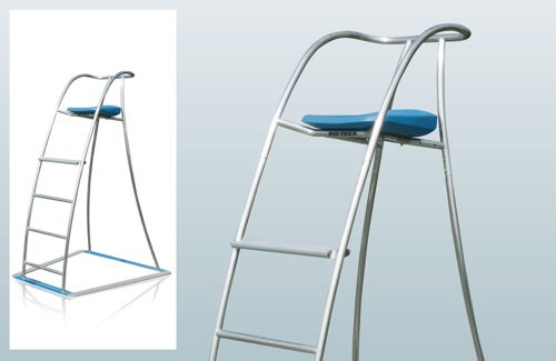 卓球の試合で、審判が試合を公平に見渡し、正確な判定を下すために座る、高さを設けた椅子です。
