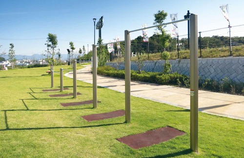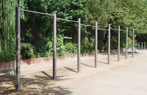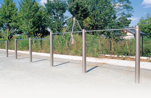 グラウンドや公園の地面に恒久的に設置される、体操や懸垂に使用する水平な棒状の器具です。