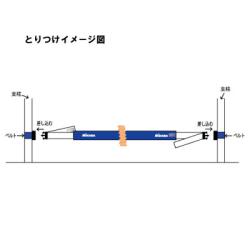 1.ネット設営後両支柱にベルトをまきつけマジックテープでしっかり留めます。
