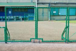 ●枠/鉄製、メッキ処理後焼付塗装φ27.2mm●ネット/ポリエステル(再生PET樹脂100%)●太さ165T/120本、□35mm、無結節●H1200×W2000×D500mm●13kg●折りたたみ式●杭2本付(L200mm)【鉄製】