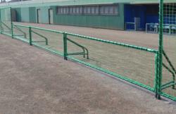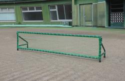 ●枠/鉄製、メッキ処理後焼付塗装、φ27.2mm、脚部ゴムキャップ付●ネット/ポリエステル(再生糸100%)●太さ165T/120本無結節●H1200×W2000×D500mm●杭2本付(L300mm)●11kg●折りたたみ式【鉄製】
