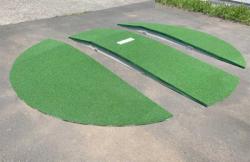 全面人工芝仕様の移動式ピッチャーマウンド コンパクトサイズ。3分割ユニット構造。