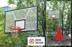 ●ボード:アルミパンチング板、焼付塗装●主柱/アーム:鉄製、メッキ処理後焼付塗装●重量:187kg●主柱・土台枠/□90mm/2500×1200mm●リング高/3050mm●防護マット/防水帆布製、ポリエチレンフォームt50(一部t30)バンド式●アーム・リング直結型●杭6本付●キャスター付、ウエイト別、組立式【アルミパンチング】