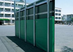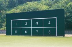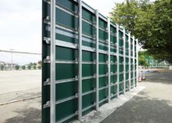 ●ボード/メラミン化粧板●柱/アルミ合金製、アルマイト処理後クリア塗装●H3600×L9600mm●組立式【PHOTO:川崎フロンターレ麻生グラウンド】※シューティングボードは風速34m/s地表面粗度区分で設計しております。(建築基準法施行令第87条に基づく)【メラミン化粧板】【アルミ柱】【要施工】