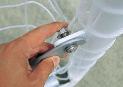 ●H1000×W2000×D1000mm(φ50mm)●1/2対11kg●転倒防止杭付(6本/対)●アルミ合金製●アルマイト処理後焼付塗装(ポスト・クロスバー)●ネット/ポリエチレン、太さ440T/120本●折り畳み式【アルミ製】