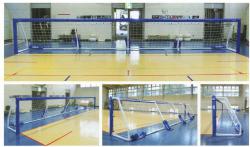 設計見積ゴールボールは視覚障害者によるスポーツで、鈴の入ったボールを相手ゴールに転がして投げ入れて得点を競う競技です。パラリンピックの正式種目になっています。防護マットをまいた状態で、正規のゴール間口寸(W9000*H1300mm)が確保される使用で設計されています