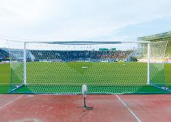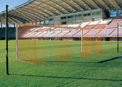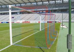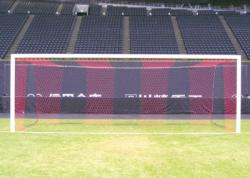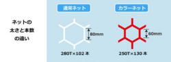 ●網目/六角●ネット奥行上部2,200mm下部2,200mm●ポリエステル製●太さ280T/130本【PHOTO:横浜Fマリノス(日産スタジアム)】※お見積に関しては別途ご相談ください。※カラーを分かりやすくするため、通常のネットより糸目を太く目を小さくしています。【六角目】【ポリエステル】【カラー着色】