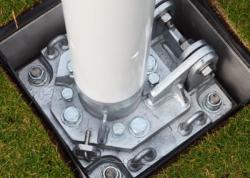 ●下部ポール:鉄製、メッキ処理後焼付塗装●上部ポール:アルミ合金製、アルマイト処理後電着塗装(一部、焼付塗装)●ターフトレイ天然芝用:(ステンレス製)付属●ウインチ柱:鉄製、メッキ処理後焼付塗装●本体:1/2対630kg●ウインチ柱:70kg(ウインチ含む)●組立式※基礎一体施工のため埋設管は不要となります。※常設の場合は固定式にも対応いたしますのでお問い合わせ下さい。※本製品は台風等の強風が予想される場合には撤去して下さい。※本製品は風速30m/s、地表粗度区分Ⅲで設計しております。※施設の状況に応じて、その他の仕様のゴールについても検討いたしますのでお問い合わせ下さい。※防護マットは別売りです。※ウインチは定期的な点検が必要になります。※ワイヤーは消耗品となりますので定期的な交換をお願いします。※写真(左)はイメージ合成画像です。【PHOTO:小田原市城山陸上競技場(神奈川県小田原市)】【アルミ製(一部鉄製)】【起倒式】【要施工】