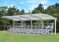 ●鉄製、溶融亜鉛メッキ処理後フッ素樹脂塗装●柱φ165.2mm●屋根φ139.8mm●屋根材/シート張●W12000×D3400×H3175(4連)●1780kg(4連)●組立式【PHOTO:丸山公園サッカー場(栃木県日光市)】※ルイ・ステージは別売です。※写真はスタンドシェル30×8連棟となります。※スタンドシェル30は、風速34m/s、地表面粗度区分Ⅲで設計しております。(建築基準法施行令第87条に基づく)※屋根材は国土交通大臣認定の不燃材料を使用しています。(認定番号NM-5519)【鉄製】【テントシート】【要施工】