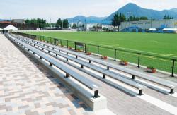 ●座/アルミ合金製(アルマイト処理後電着塗装)●脚部/鉄製(溶融亜鉛メッキ後焼付塗装)φ76.3mm●座奥行き250mm【PHOTO:千曲市サッカー場(長野県千曲市)】※1m当たりの金額となります。【アルミ製】【脚部鉄製】【要施工】