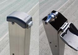 ●材質:ステンレス製●塗装:未塗装(ヘアライン仕上げ)●外寸:□100mm●1組31.5kg●ウインチ:スパイラルギア内装式●キャップ:アルミ合金鋳物【SUS製】【角型】【要施工】