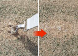 砂入り人工芝におススメ。表面がフラットなステンレス製。金具の出っぱりがありません。