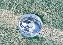 ステンレス製丸型センター金具 砂入り人工芝におススメ。表面がフラットなステンレス製。金具の出っぱりがありません。