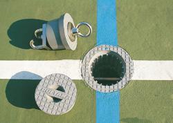 弾力性のあるゴム蓋でフラットに 未使用時にはゴム蓋をすることでグラウンドの多目的利用が可能。