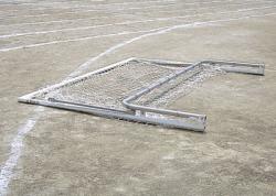 ●H2000×W3000×D1000mm(φ50mm)●1/2対16kg●転倒防止杭付(6本/対)●アルミ合金製●アルマイト処理後焼付塗装(ポスト・クロスバー)●ネット/ポリエチレン、太さ440T/120本●折り畳み式●ポスト2分割仕様【アルミ製】