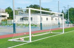 ●アルミ合金製●アルマイト処理後電着塗装(一部焼付塗装)●ポスト・クロスバーφ120mm(後部アームφ80mm)、間口寸法/H2150×W5000mm(正規サイズ)●1/2対85kg●ネットスティック仕様/転倒防止杭付(12本/対)●ネット別●組立式【PHOTO:東京国体下宿第三運動公園(東京都清瀬市)】※写真は一般用の画像となります。【アルミ製】【SG規格品】【後部フレームなし】【国体対応】【JFA用具ガイドライン】