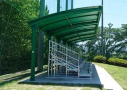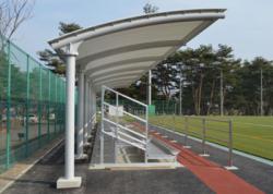 ●鉄製、溶融亜鉛メッキ処理後フッ素樹脂塗装●柱φ216.3mm●屋根φ165.2mm●屋根材/シート張●W8000×D4000×H3600(2連)●1600kg(2連)●組立式【PHOTO:沼田市運動公園(群馬県沼田市)】※ルイ・ステージは別売です。※写真はスタンドシェル40×5連棟となります。※スタンドシェル40は、風速34m/s、地表面粗度区分Ⅲで設計しております。(建築基準法施行令第87条に基づく)※屋根材は国土交通大臣認定の不燃材料を使用しています。(認定番号NM-5519)【鉄製】【テントシート】【要施工】