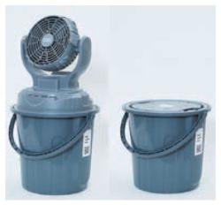 サイズ:W400×D370×H710(mm)バケツの上に置いた時重量:4.9kgバケツ容量:23L首振り角度:70度〜左右角度調節:160度〜上下風力調整:3段階、ミスト調整:2段階、ミスト噴霧量:強5.3L/h 弱4.9L/h