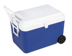 カラー:ブルーサイズ(約):幅640×奥行430×高さ450mm容量(約):60L素材:本体内側・水抜き栓・ハンドル(大)・ハンドル(小):ポリプロピレン、ふた:ポリエチレン、断熱材:発泡スチロール、タイヤ:ポリプロピレン保冷力:4度以下(8時間)2Lペットボトル約15本、500mlペットボトル約33本収納可能内寸:55×34.5×33cm原産国:中国