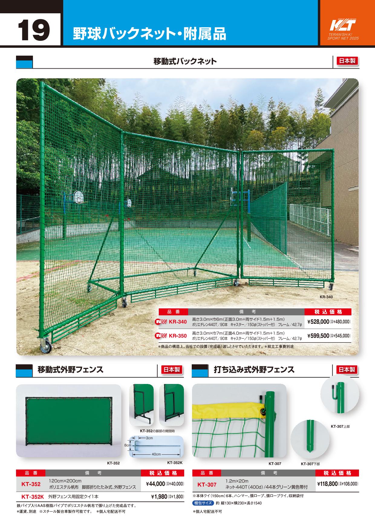 KR-350 野球移動式バックネット 3面