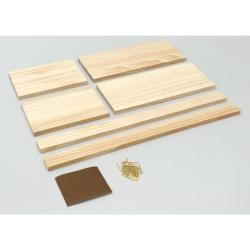 商品サイズ:板材(ラジアタパイン集成材):360×150×15mm / 230×150×15mm / 600×40×15mm、不織布保管袋:300×800mmセット内容:板材(360×150×15mm)×2、板材(230×150×15mm)×2、板材(600×40×15mm)×2、真鍮メッキ釘(N-32)×40、説明書(作例図面8種類付)×1、不織布保管袋(300×800mm)×1、サンドペーパー×1重量:1472(g)材質:ラジアタパイン、真鍮梱包形態:袋入り梱包サイズ:―×―×―(mm)製造国:中国