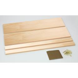 商品サイズ:板材(ラジアタパイン集成材):600×150×15mm / 600×40×15mm、設計用スチレンボード:620×125×5mm、不織布保管袋:300×800mmセット内容:板材(600×150×15mm)×2、板材(600×40×15mm)×2、設計用スチレンボード×1、真鍮メッキ釘(N-32)×40、説明書(作例図面8種類付)×1、不織布保管袋(300×800mm)×1、サンドペーパー×1重量:1702(g)材質:ラジアタパイン、真鍮梱包形態:袋入り梱包サイズ:―×―×―(mm)製造国:中国