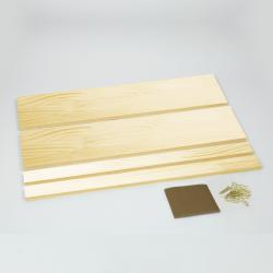 商品サイズ:板材(フォルカタ集成材):600×150×15mm/ 600×40×15mm、不織布保管袋:300×800mmセット内容:板材(600×150×15mm)×2、板材(600×40×15mm)×2、真鍮メッキ釘(N-32)×40、説明書(作例図面8種類付)×1、不織布保管袋(300×800mm)×1、サンドペーパー×1重量:1237(g)材質:ファルカタ、真鍮梱包形態:袋入り梱包サイズ:―×―×―(mm)製造国:中国