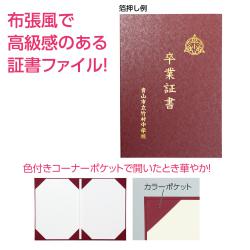 カテゴリ:記念品>証書ファイル商品説明:コーナーポケットを表紙と同カラーの素材で作っている証書ファイルです。品質にこだわった、格調高い高級布張風。卒業証書や卒園証書だけでなく、感謝状や認定証、免状なども収めるのに便利なファイルです。8カ所にコーナーがついており、片面・見開きのどちらにも対応しています。さまざまなサイズに対応が可能です。証書適合サイズ:420×297~430×299mm、297×210~299×215mm。別売の「5940:コーナーポケットシール」を好きな位置に貼れば、適合サイズよりも小さい証書を固定することができます。検索キーワード:証書ファイル 高級感 布張り風 A えんじ 色付きコーナーポケット 証書ホルダー 賞状ホルダー 卒業証書 卒園証書 記念品 卒業式 卒園式 式典 入社式 感謝状 認定証 免状 修了証書 卒団証書 卒園証書 小学校 保育園 幼稚園 部活 会社 退職 退団 卒団 注意事項:証書・台紙等は付属しておりません。商品は無地になります。メーカーサイトURL:動画URL: