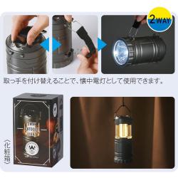 カテゴリ:防犯・防災>防犯・防災商品商品説明:ランタンと懐中電灯の2WAYで活躍するアウトドアライトです。本体の側面にあるLEDライトはランタンとして使い、上部を延ばすだけで点灯します。また、取っ手を付け替えて懐中電灯としても利用可能です。電池式なので電源がない場所でも安心して使えます。アウトドアはもちろん、停電時などの防災アイテムとしても役立ちます。検索キーワード:ランタン 懐中電灯 LEDライト 2WAYライト 電池式 防災ライト 持ち運び便利 夜間作業 取っ手付き ミリタリーデザイン 照明器具 携帯ライト アウトドア キャンプ 防災 防災用品 防災グッズ 防災備蓄 災害 非常用 緊急時 地震 地震対策 津波 避難生活 停電対策 注意事項:単3アルカリ乾電池3本が別途必要になります。メーカーサイトURL:動画URL: