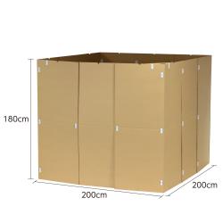 商品サイズ:H180×W200×D200cmセット内容:段ボールパーツ×12、コーナーパーツ×2、ジョイントパーツ×37、マジックテープ×2重量:11000(g)材質:段ボール、PP梱包形態:箱入り梱包サイズ:920×175×800(mm)製造国:日本
