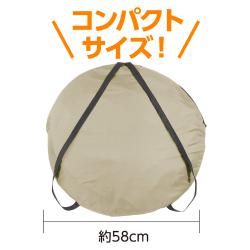 商品サイズ:組立時:約1200×1900×1200mm、収納時:φ580×60mmセット内容:テント本体×1、収納バッグ×1、ペグ×4、ペグ固定ひも×4重量:2045(g)材質:ポリエステル、鉄梱包形態:袋入り梱包サイズ:580×580×60(mm)製造国:中国