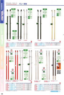 メモリ付/支柱部にメモリを付けていますので高さの設定が容易。指づめ防止/ピンを抜いた状態でも指をつめることのない様に頭部と中央ジョイントの間にすき間ができるように設計。屋内用底ゴム付/屋内用支柱には、体育館の床を傷つけないように底ゴムが付いています。