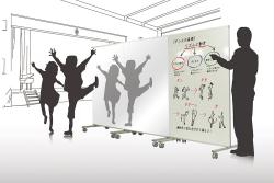 2台以上並べてご使用の場合は、連続金具(別売)が必要になります。裏側がホワイトボードとして使えるミラーボード。