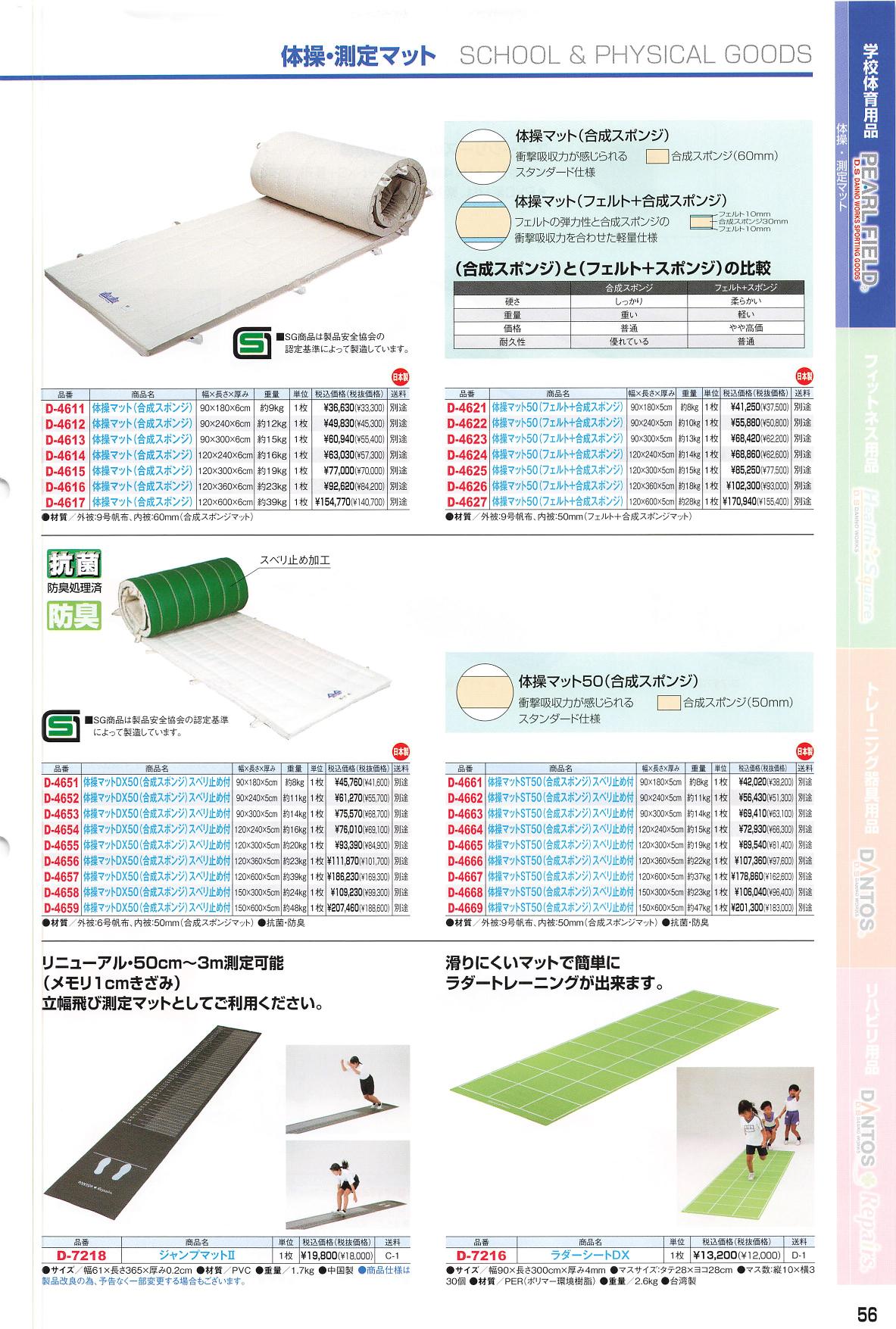 D4625 体操マット50(フェルト+合成スポンジ) 9号帆布 淡野製作所(DANNO)