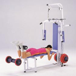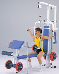 商品外装サイズ:××商品本体サイズ:重量:素材:スチールパイプ製/塗装:クロームメッキ・焼付塗装/ベンチ:高級レザー張り・ウレタン入り機能:付属品:原産国:成分表記:仕様:特徴:運動機能:バタフライ、バックエクステンション、レッグカール、レッグエクステンション、ベンチプレス、ラタラルレイズ、ツーハンズベンチカール、ラットプルダウンその他運賃:別途お見積/組立費用:別途お見積 バーベル台:4段階調節/レッグカール器サイズ:カールポジション35cm~45cm調節可能・エクステンションポジション34cm 負荷調節用シャフト2本付 バーベルセット・プレート別売