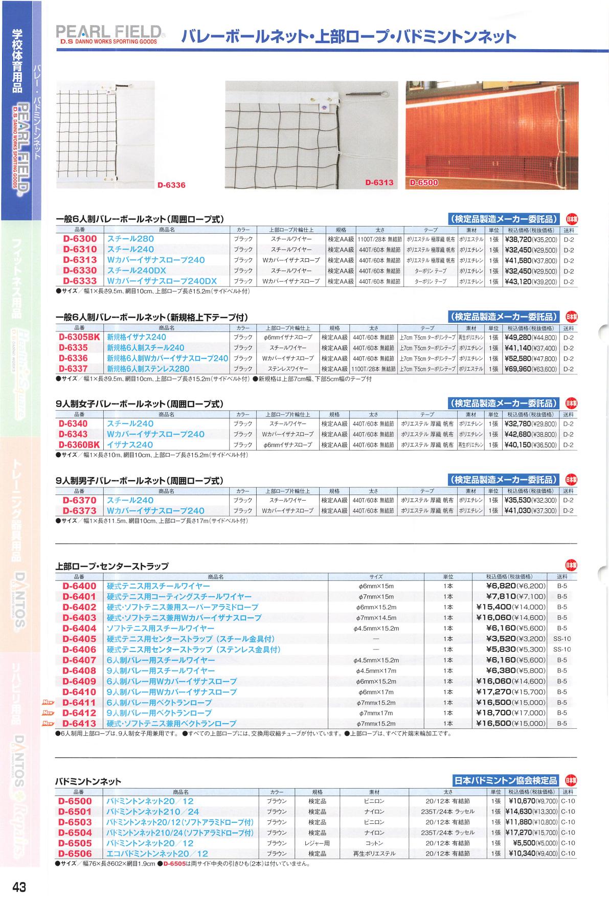 D6409 上部ロープ・センターストラップ 6人制バレー用Wカバーイザナスロープ 淡野製作所(DANNO)