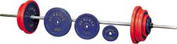 プレートの止具はスパナ不要の特製ハンドル式カラーです。シャフトにはゴム製の握りが付いているので手に伝わる鉄の冷たさをやわらげ、手の滑りを防止します。ゴムカバー付きの利点は、音がしないで静かにトレーニングができ、他の器具や家具にキズをつけません。
