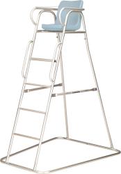 カテゴリ:学校体育器具>器具・備品>器具検索キーワード:学校体育 球技 審判台 アルミ 座りやすい ポリエチレンブロー成型 椅子 平ステップ付き 手すり付き
