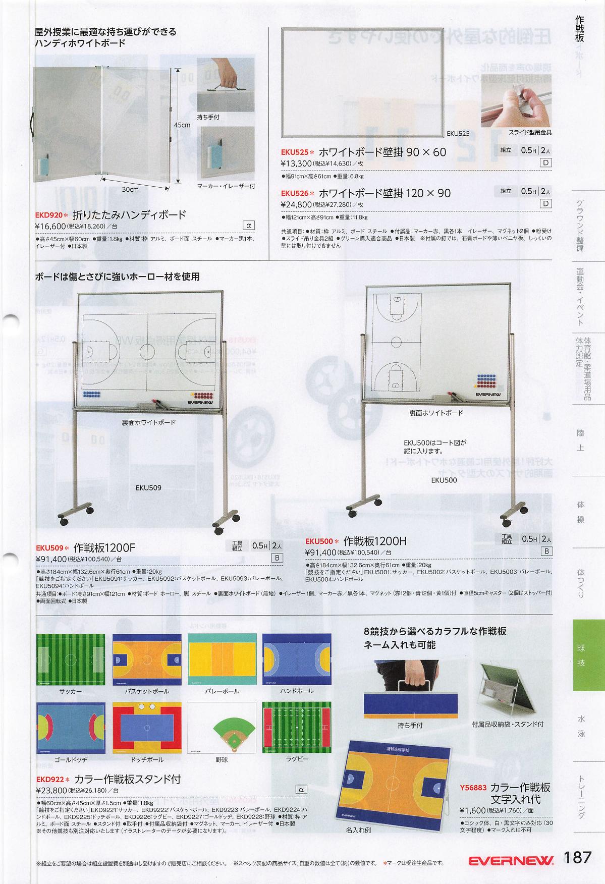 商品外装サイズ:××商品本体サイズ:サイズ:高さ184cm×幅132.6cm×奥行61cm、ボードサイズ/高さ91cm×幅121cm重量:素材:素材:材質:ボード/ホーロー、脚/スチール機能:付属品:付属品:黒板消し1個、マーカー赤/黒各1本、マグネット(赤12個・青12個・黄1個)付原産国:日本成分表記:仕様:仕様:裏面ホワイトボード(無地)特徴:「競技をご指定ください」EKU5001=サッカー・EKU5002=バスケットボール・EKU5003=バレーボール・EKU5004=ハンドボールその他