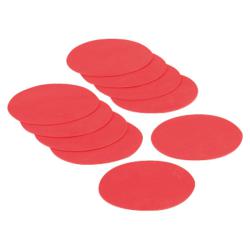 整列時の並ぶ位置や、運動時に競技エリアを区分する範囲目印・ケンケンパの様なジャンプ運動をする際の着地マークとして活用が出来ます。厚さ2.5mmと薄い為、地面や床との段差が少なく、ボールを使用している時に当たってもボールの軌道に影響を与え難くなっています。裏面には滑り止め用のシボ[凸凹]加工が施されており、体育館などフローリング床の様な場所で使用しても目印マークとして位置がズレ難い様に作られています。運動指導時には青・赤の「色」による課題指示などにも対応が出来ます。